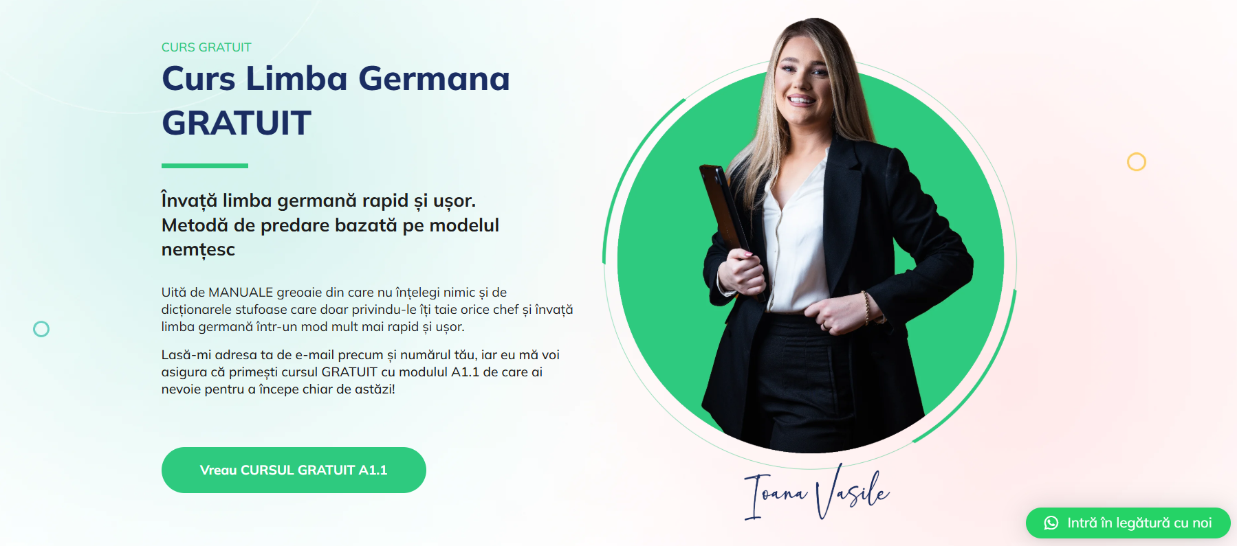 Dacă te pregătești pentru o călătorie în Germania, dar îți faci griji că nu te vei descurca în situațiile de zi cu zi, o soluție simplă și practică este să începi să înveți limba germană. Cursul de limba germană al Ioanei Vasile este exact ce ai nevoie pentru a te simți încrezător, fie că vrei să ceri indicații pe stradă, să comanzi la restaurant sau să interacționezi cu localnicii.